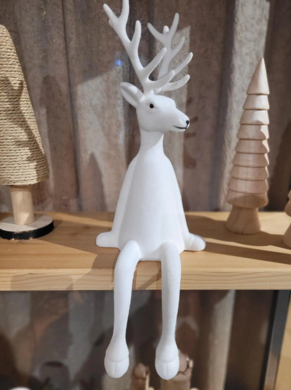 Dit hert trekt ieders aandacht! Of het nu op de vensterbank of in de kast is, hij zorgt gelijk voor winterse gezelligheid.Het hert is helderwit van kleur, gemaakt van gevlokt plastic en heeft een fluweelzacht oppervlak.Hoogte: 33 cm