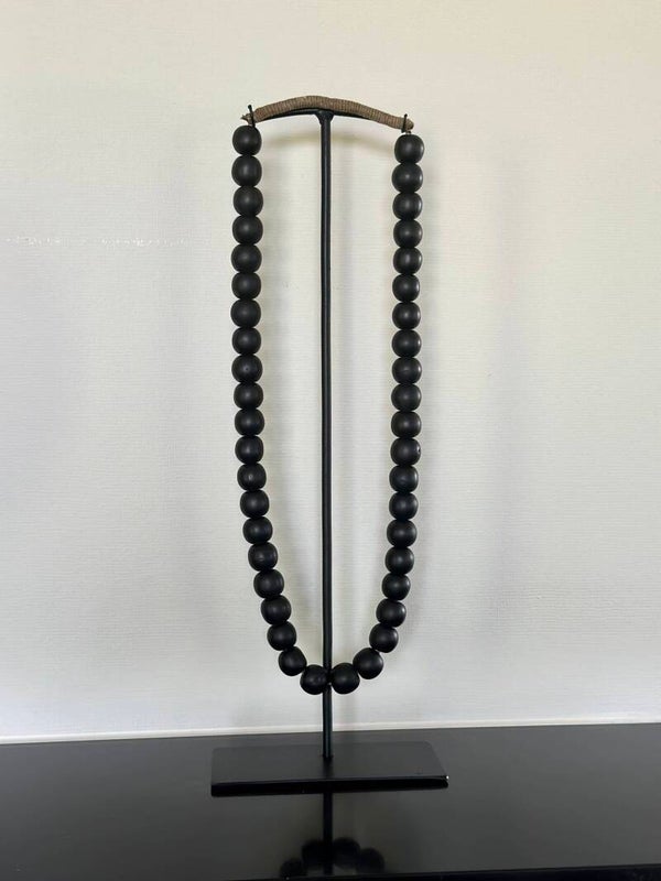 Maak een statement in je interieur met deze kralenketting op standaard. De ketting van zwarte kralen staat op een stevig metalen voetje en vormt een opvallende decoratie voor je vakkenkast, sidetable of dressoir. Dankzij het tijdloze design laat dit ornament zich eenvoudig combineren met andere woonaccessoires.