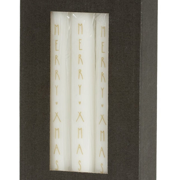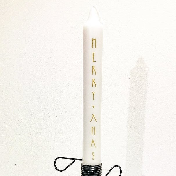 Deze kaarsenstandaard is van metaal en heeft een mooie beige/zandkleur. Tekst kaars: Merry X-Mas.Ideaal voor een gezellige sfeer op tafel bij een etentje.